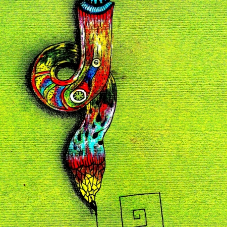 Szerényi Gábor vagyok, Cseh Tamástól kapott indián nevemen Úszó Ház. Gyerekként szerettem Napoleon korabeli francia redingotokat, forgótáras Coltokat, cherokee tipiket rajzolni. Kedvelt eszközöm a mártogatós, acélhegyű toll. Lassú és sokáig tartó, türelmet igénylő technikával dolgozom. Illetve esetenként úgyis, hogy villámgyorsan villantom nyomhagyó eszközöm, mint ahogy anno vívóként tőrömet. Van, hogy elképzelem, mit szeretnék megjeleníteni – például fregattot fotelben – olykor meg csak elindulok egy vonallal, s végül ott van a zsebemben az egész tenger. Ha belegondolok, leginkább megrendítő, impozáns, sőt a nézőt könnyekig megható patetikus műveket szerettem volna létrehozni. Ehhez képest sok ezer, különféle újságokban megjelent képem révén ironikus illusztrátornak, vonakodásom ellenére klasszikus karikatúristának soroltak be, még a Magyar Képző- és Iparművészek Szövetségének szatirikus szakosztálya, a KOKSZ Műhely egyik alapító tagja, sőt, titkára lettem. Tenyérnyi noteszeimben, mint titkos ügynök, diszkréten és álcázva szoktam skiccelgetni a tömegközlekedésbeli utastársakat. Riadt tekintetek esetén – ellenőrnek vélnek! – nemtörődömséget mímelek. Senkinek se vagyok kíváncsi a jegyére, bérletére. Ellenben a szomorú profilok, elszalonnásodott kabátok gyűrődései nem ritkán motívumgyűjtő portyáim zsákmányai. Ahogy Kukorica Jancsi beugrik a sárkány torkába, én is belevetem magam a kor egyik démonának, a digitális utómunkának kockázatába. Színezek ecsettel, ceruzával, krétával, photo-shoppal. Forgatom a szót is. Van, amikor a magam írásához rajzolok. Vagy fordítva, mint épp most, amikor bekonferálom képemet.